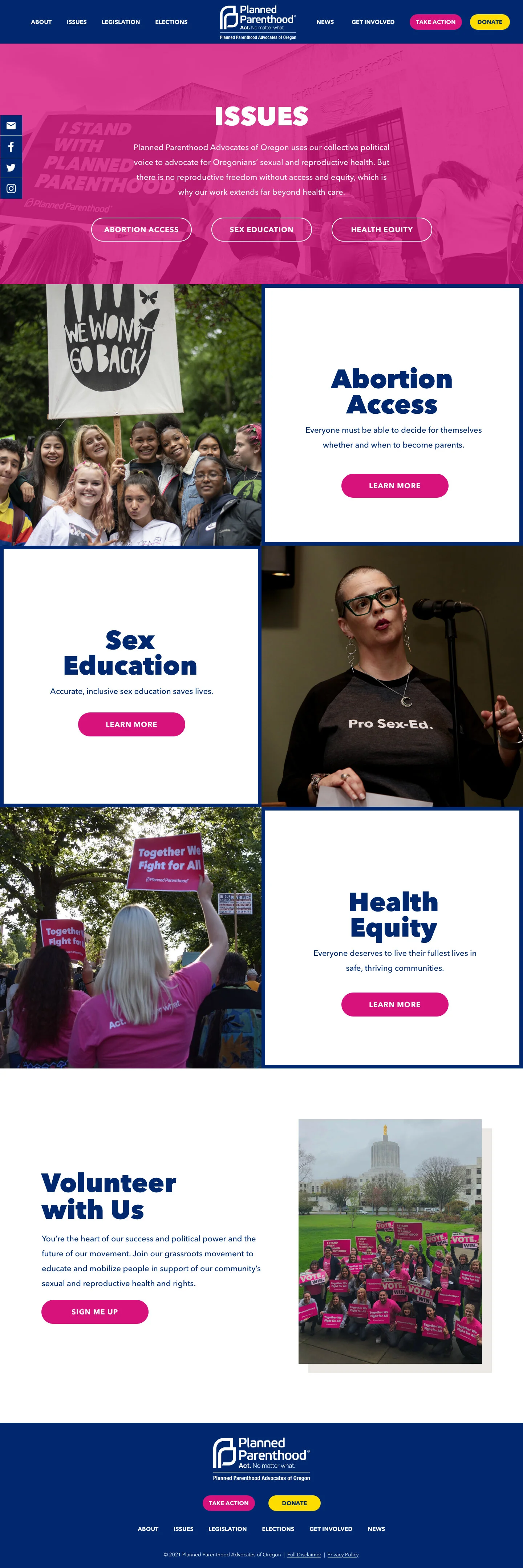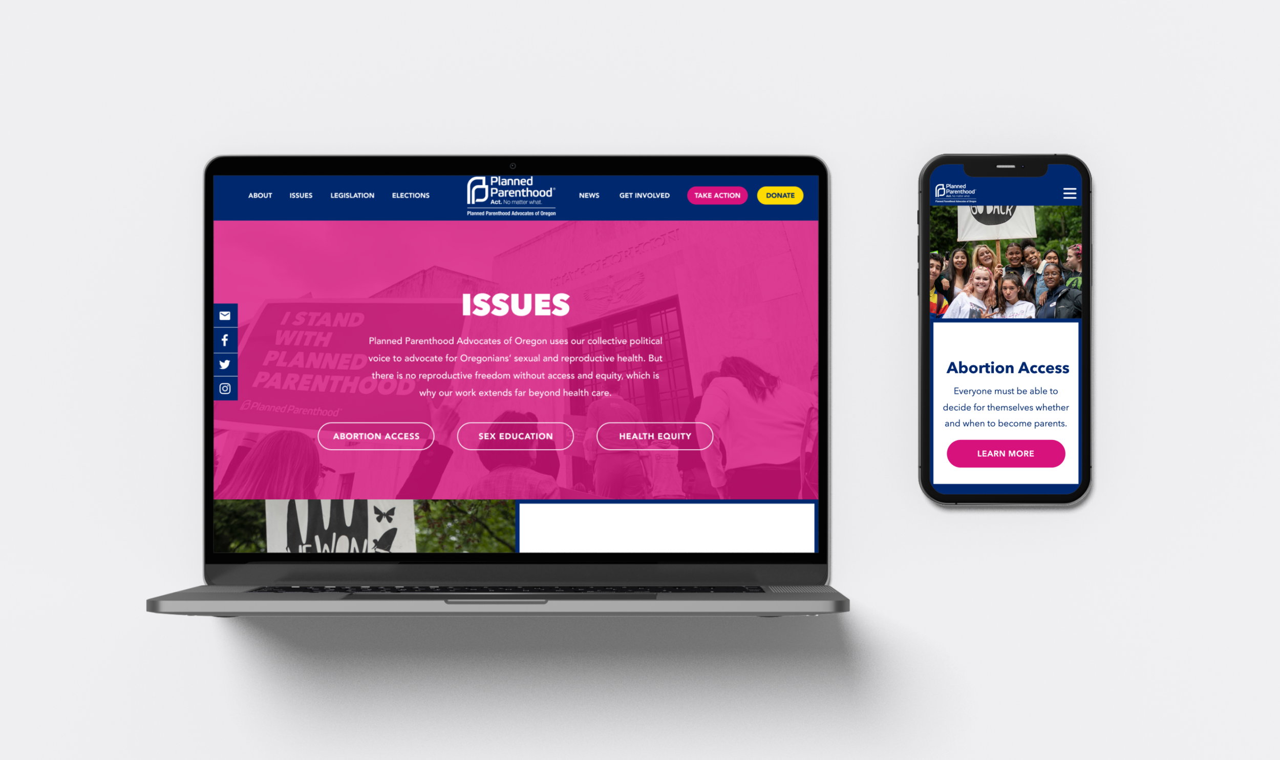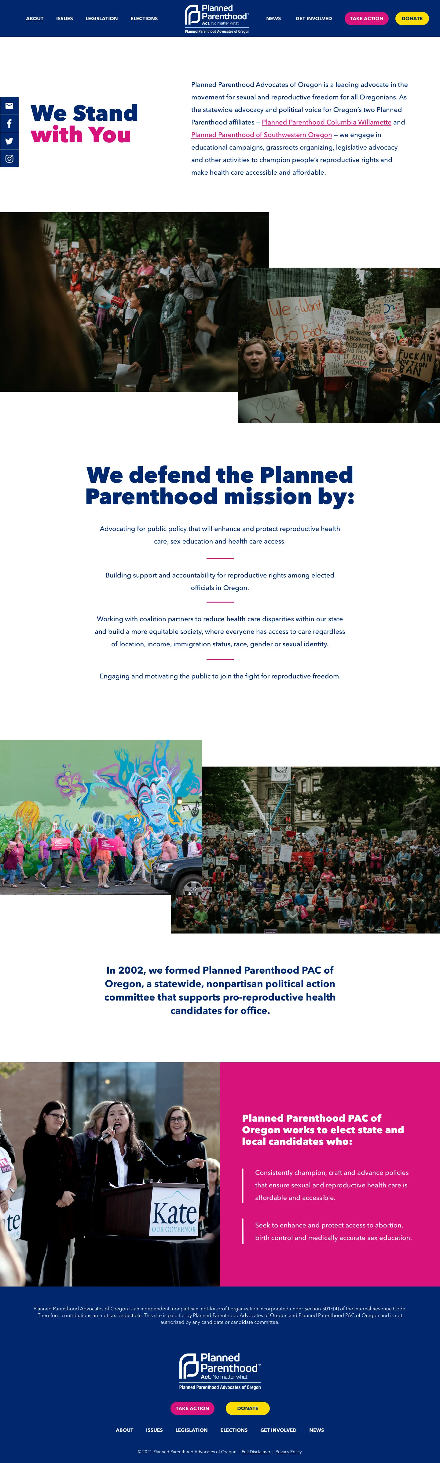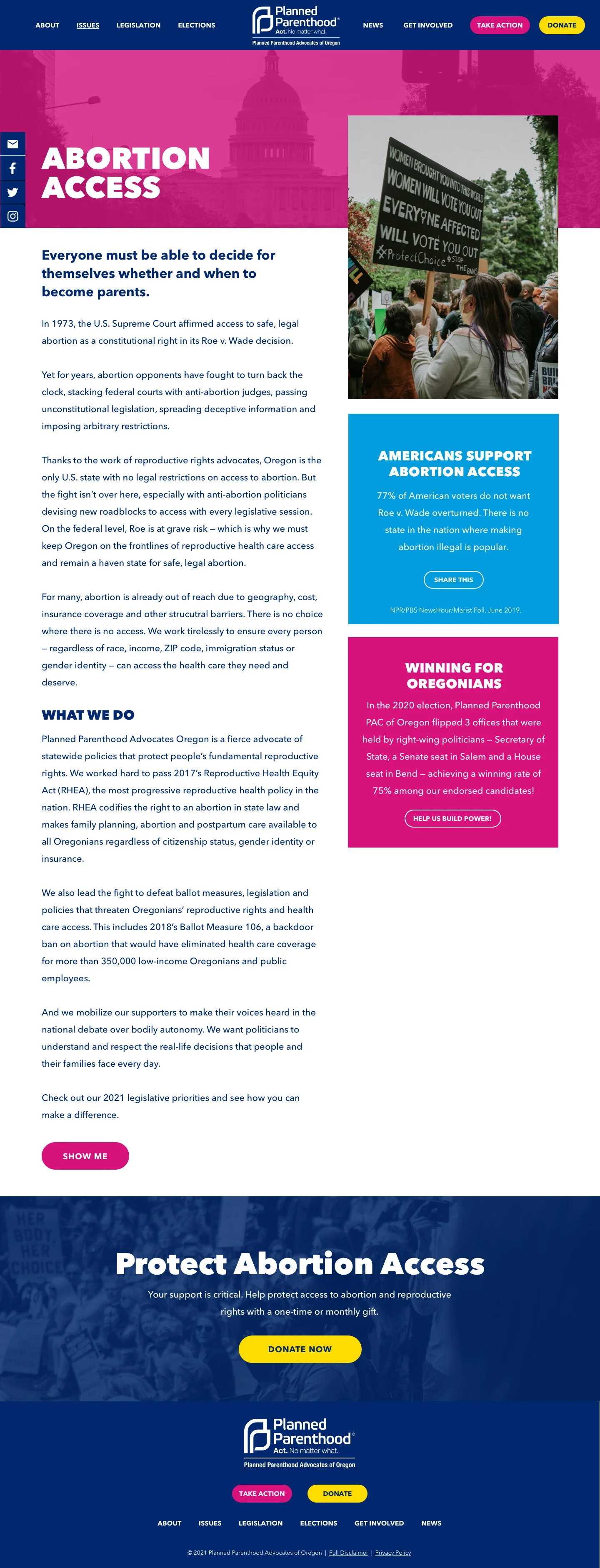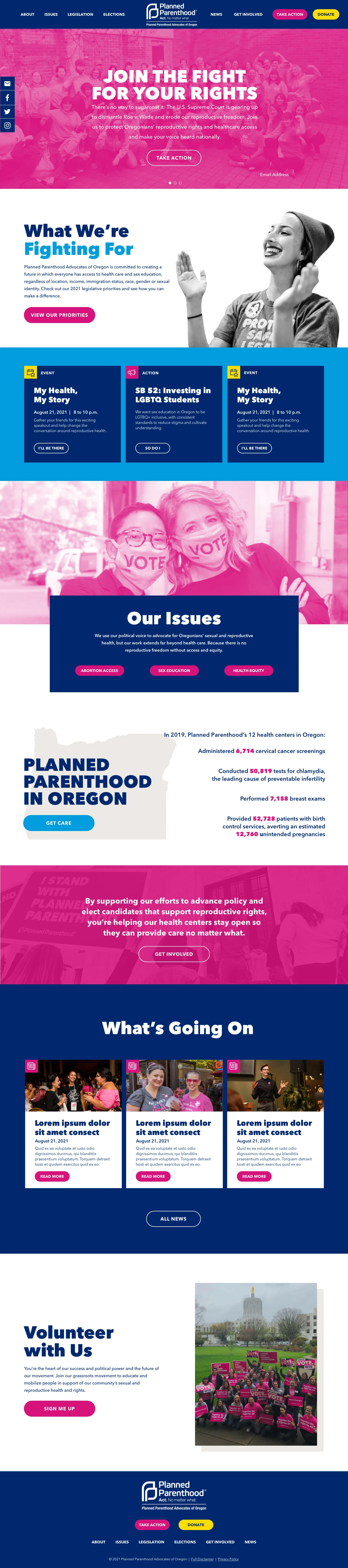 Planned Parenthood Advocates is the national advocacy branch of the organization. Their Oregon chapter has operated with a very basic website since 2005, and needed to refresh the UX and design to accommodate their modern initiatives and maximize outreach opportunities.
