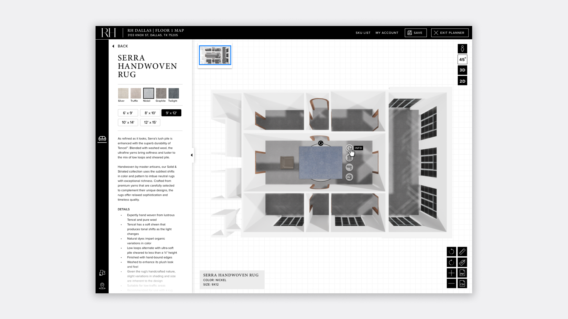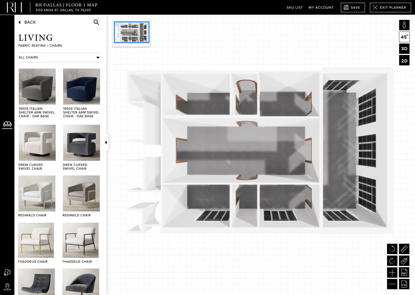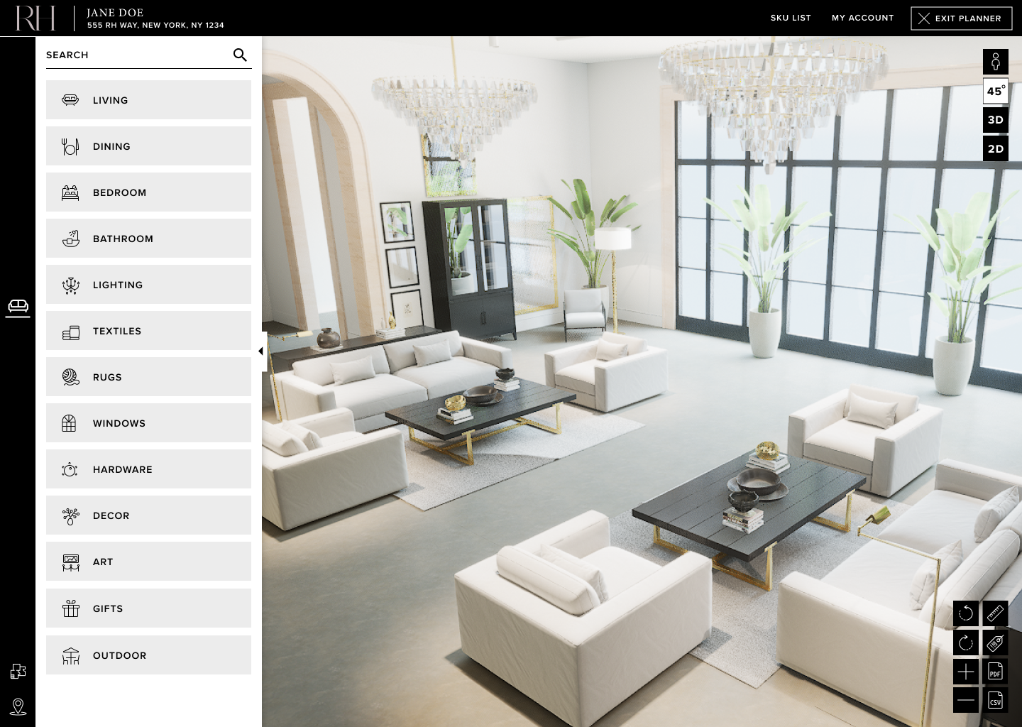 Restoration Hardware, one of the largest luxury furniture designers in the US, needed to incorporate more technology to improve their dated interior design processes. Their designers currently work manually - drawing, sketching, and tracing. To cut down on time and improve accuracy, I worked with RH to develop and design a cutting edge 3D app to streamline the sales process.